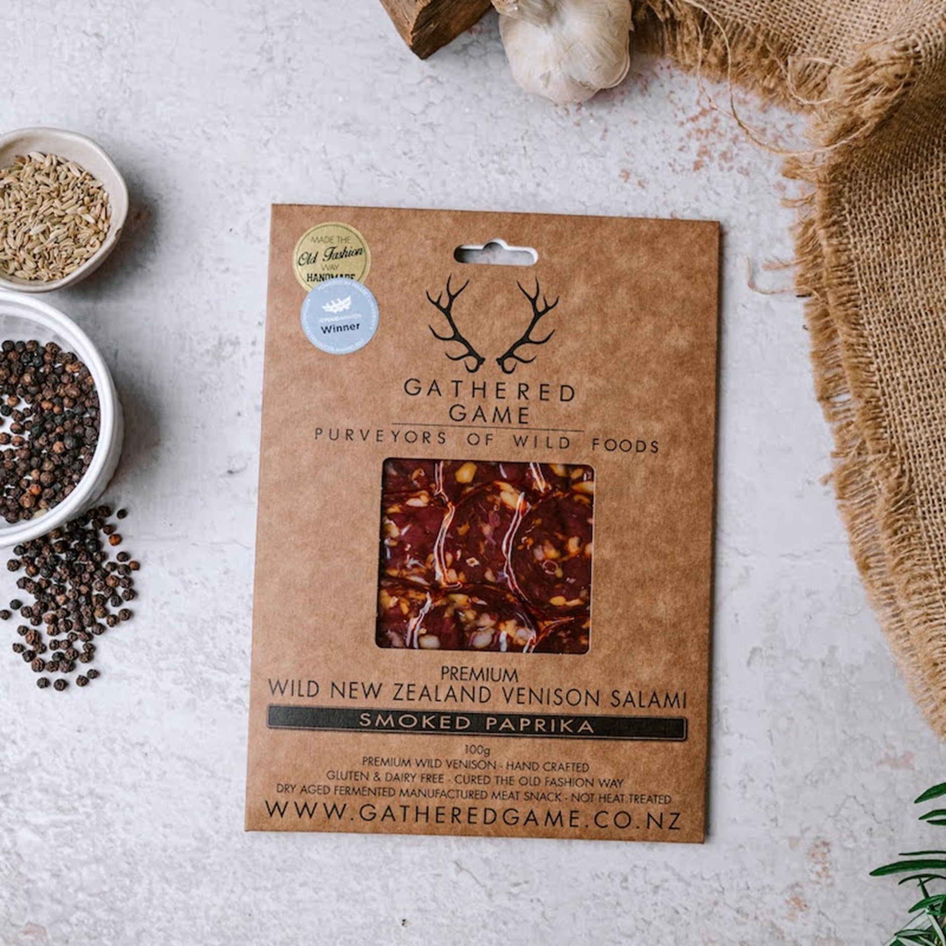 All Gathered Game venison is 100% wild, gathered from across New Zealand’s beautiful landscapes. A unique GPS tagging system allows them to track each batch of hand crafted salami back to the exact location of the wild deer which created it.