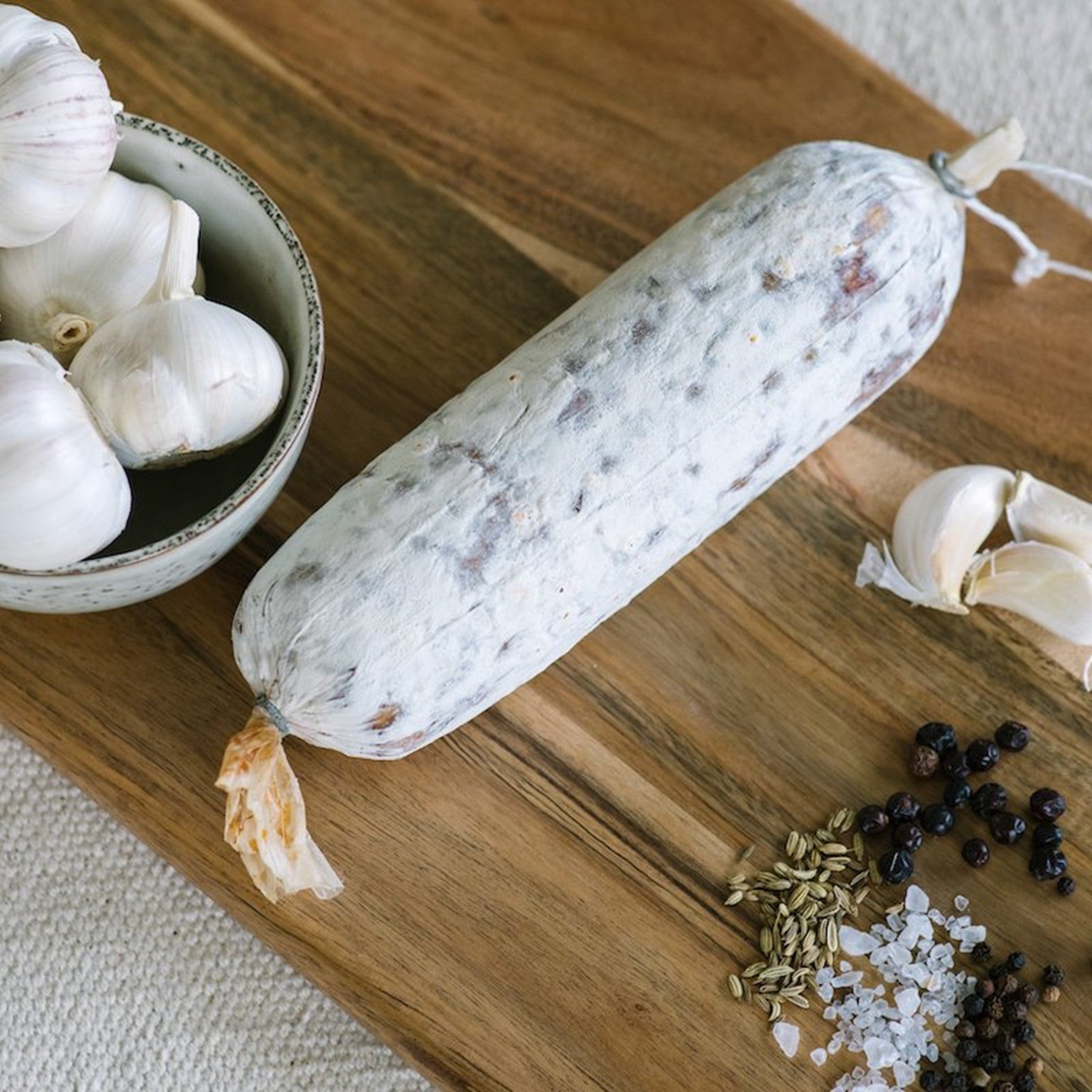 Our Gathered Game Salami is crafted with premium wild venison and a small amount of high quality pork fat.